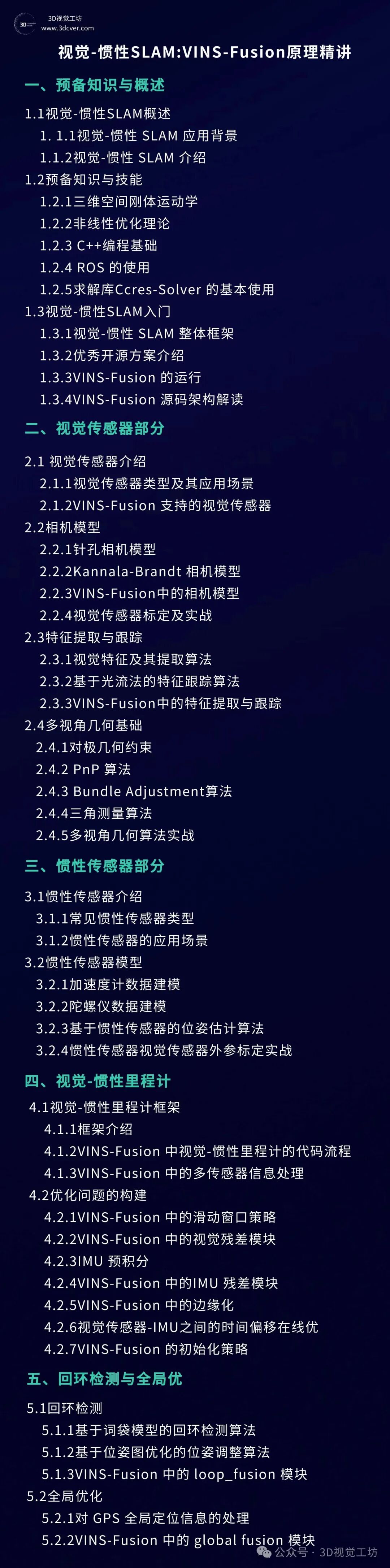 视觉-惯性SLAM的入门与实践视频教程,结合VINS-Fusion源码,系统地对视觉-惯性SLAM的基础理论知识进行梳理。 整套课程由一线算法工程师教授,从基础理论到代码剖析,保姆级教学,助力学员一步步从小白成长为大牛。