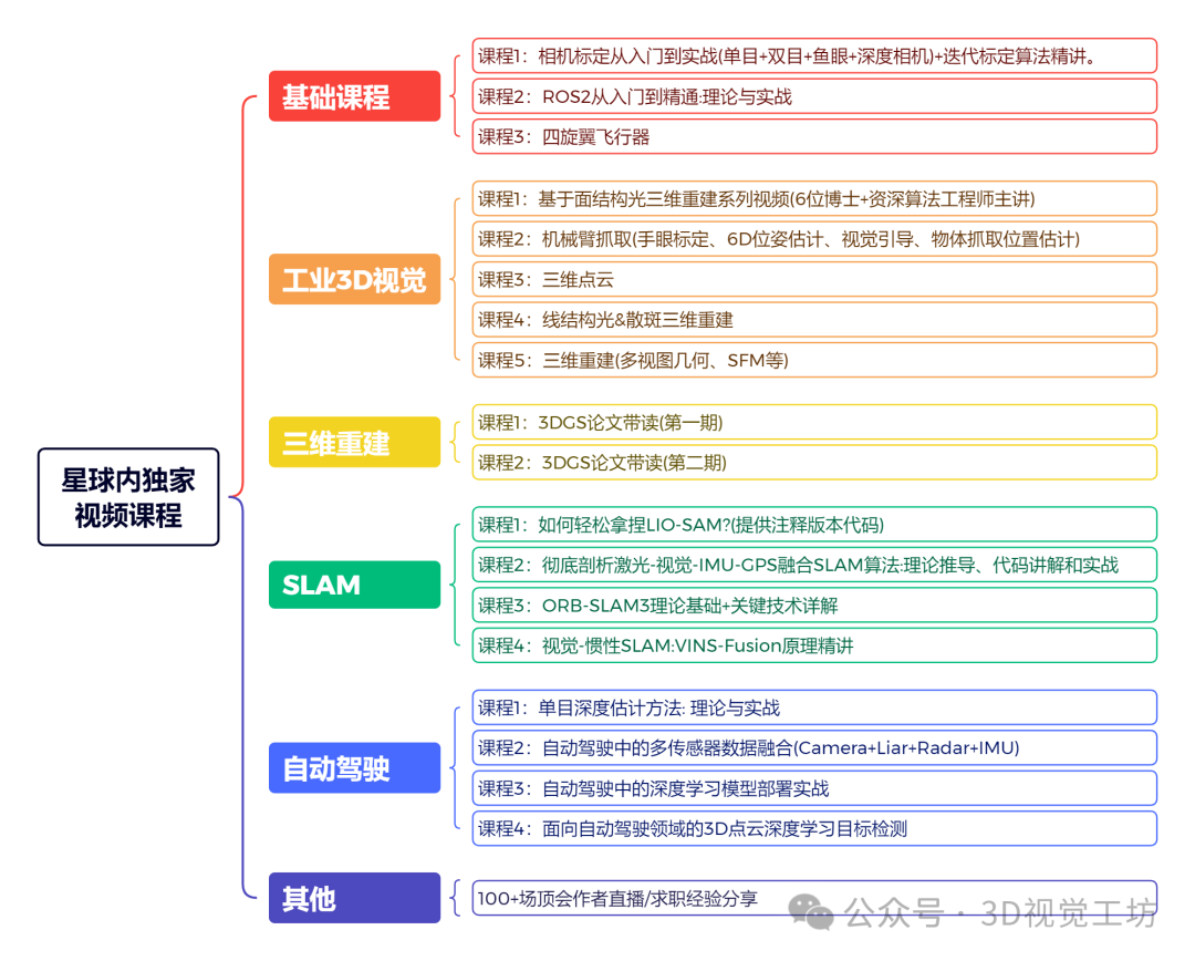 知识星球是一个高度活跃的社区平台,在这里你可以和相同研究方向的小伙伴一起探讨科研工作难题、交流最新领域进展、分享3D视觉最新顶会论文&代码资料、分享视频(讲解3D视觉重要知识点)、发布高质量的求职就业信息、承接项目等,当然还可以侃侃而谈,吐槽学习工作生活。