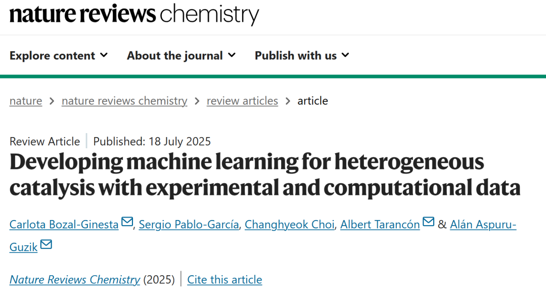Bozal-Ginesta, C., Pablo-García, S., Choi, C. et al. Developing machine learning for heterogeneous catalysis with experimental and computational data. Nat Rev Chem (2025). https://doi.org/10.1038/s41570-025-00740-4声明:仅代表译者观点,如有不科学之处,请在下方留言指正!