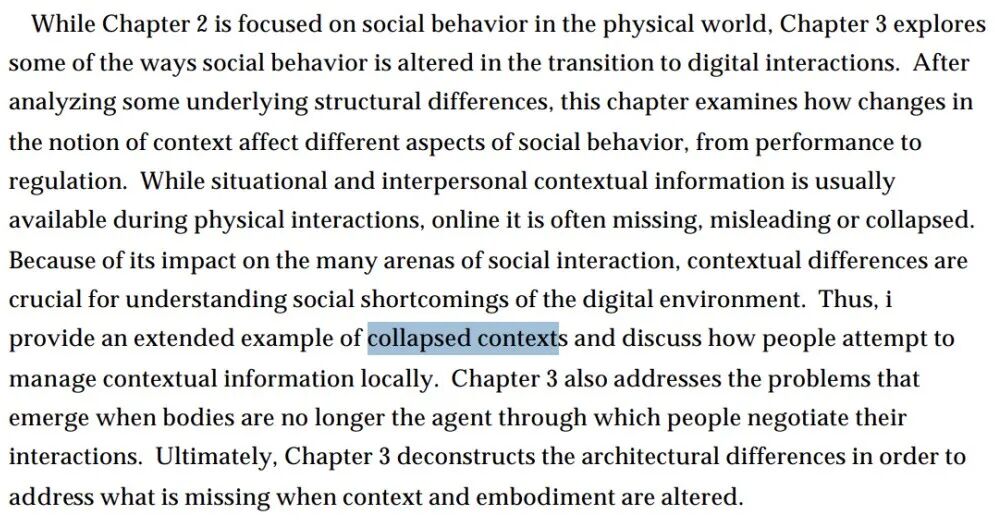 在那篇论文中,她花了整整一章反复讨论「collapsed contexts」,尽管当时并没有系统地定义这个词。