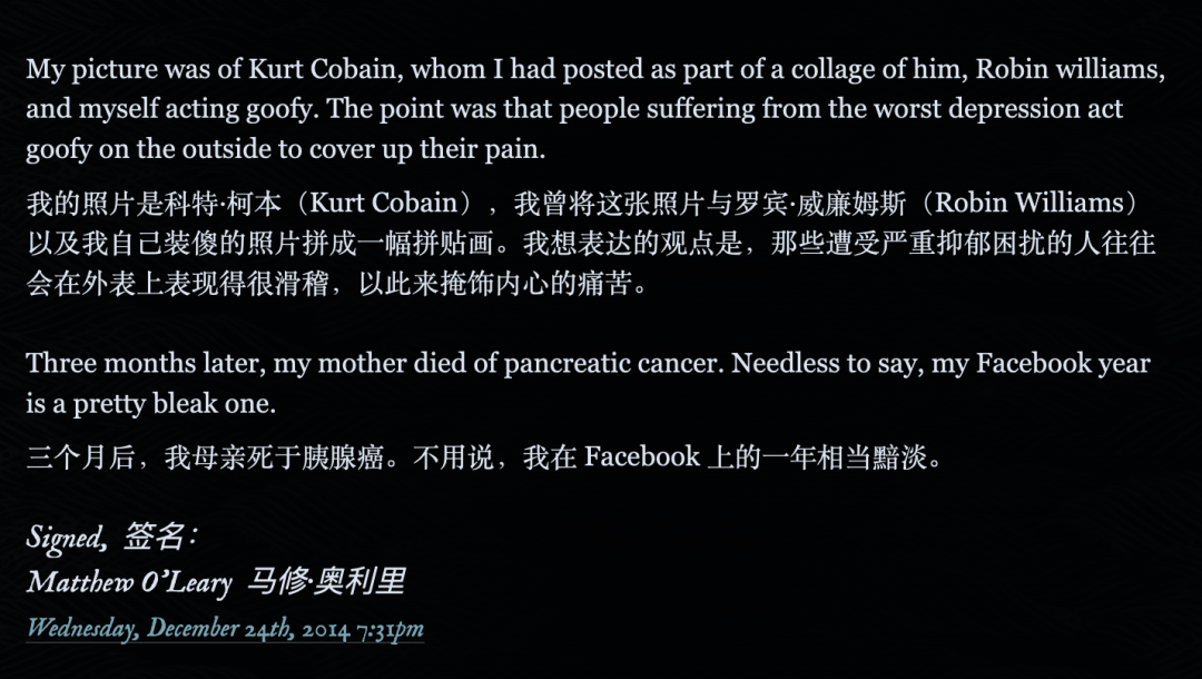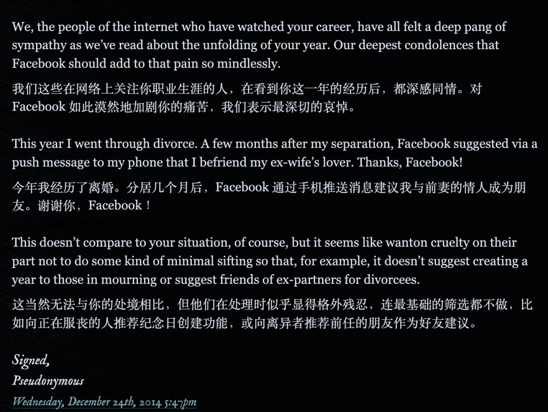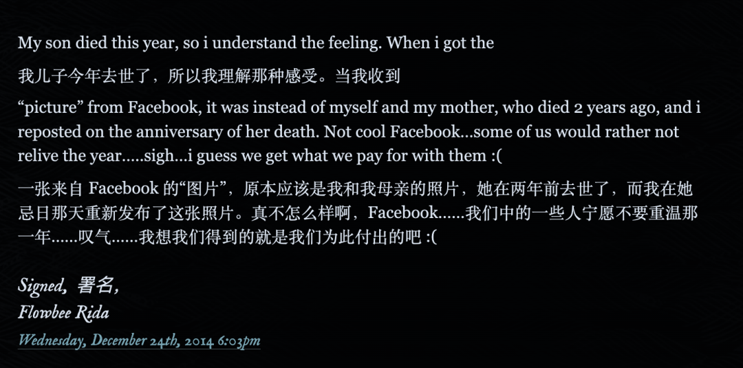那天下午,悲伤却不期而至,而这一切竟要归功于一群设计师和程序员——此刻,这些脸书幕后的创作者或许正沉浸在成就感中。