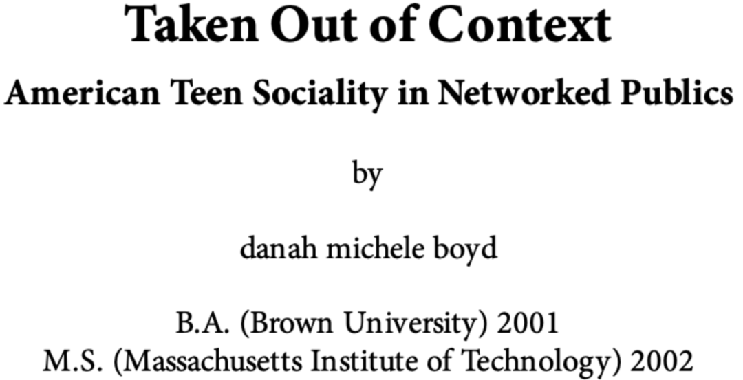 但不断有学界人士写信给danah boyd,询问她是否创造了「上下文坍塌」(context collapse)一词,因此她回过头查阅自己的记录以弄清楚这个问题。