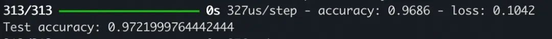 test_loss, test_acc = model.evaluate(test_images, test_labels)print(f'Test accuracy: {test_acc}')
