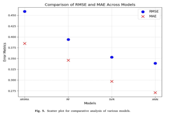 研究发现:(1)经对数转换后,股价大致呈正态分布,而比特币、煤炭、太阳能等多个变量的分布则显著偏离正态分布。(2)股价与比特币价格随时间呈现持续上升趋势,天然气和风能价格则表现出季节性模式。(3)比特币价格与煤炭价格的相关性最强,达到0.85;而股价与天然气价格的相关性最低,为-0.10。(4)单位根检验(如ADF、PP测试)表明,大多数变量在原始水平上是不平稳的。(5)对不平稳的序列进行一阶差分后,所有变量均通过了平稳性检验,满足了时间序列建模的要求。(6)研究采用80%的数据作为训练集,20%作为测试集,并通过均方根误差(RMSE)和平均绝对误差(MAE)来评估模型性能。(7)在所有被比较的模型中,人工神经网络(ANN)的预测误差最小,其RMSE为0.339,MAE为0.271,被证实为最准确的模型。(8)支持向量回归(SVR)模型的表现也具有竞争力,其RMSE和MAE值(分别为0.353和0.297)略高于ANN。(9)作为基准的传统ARIMA模型预测误差最大(RMSE为0.459,MAE为0.385),在本研究中表现最差。