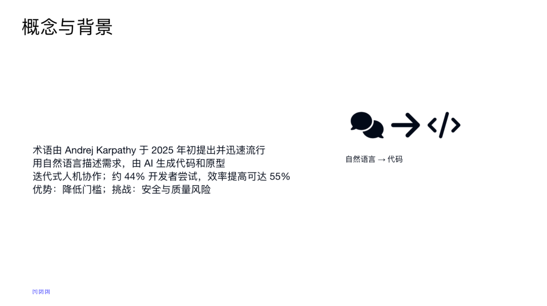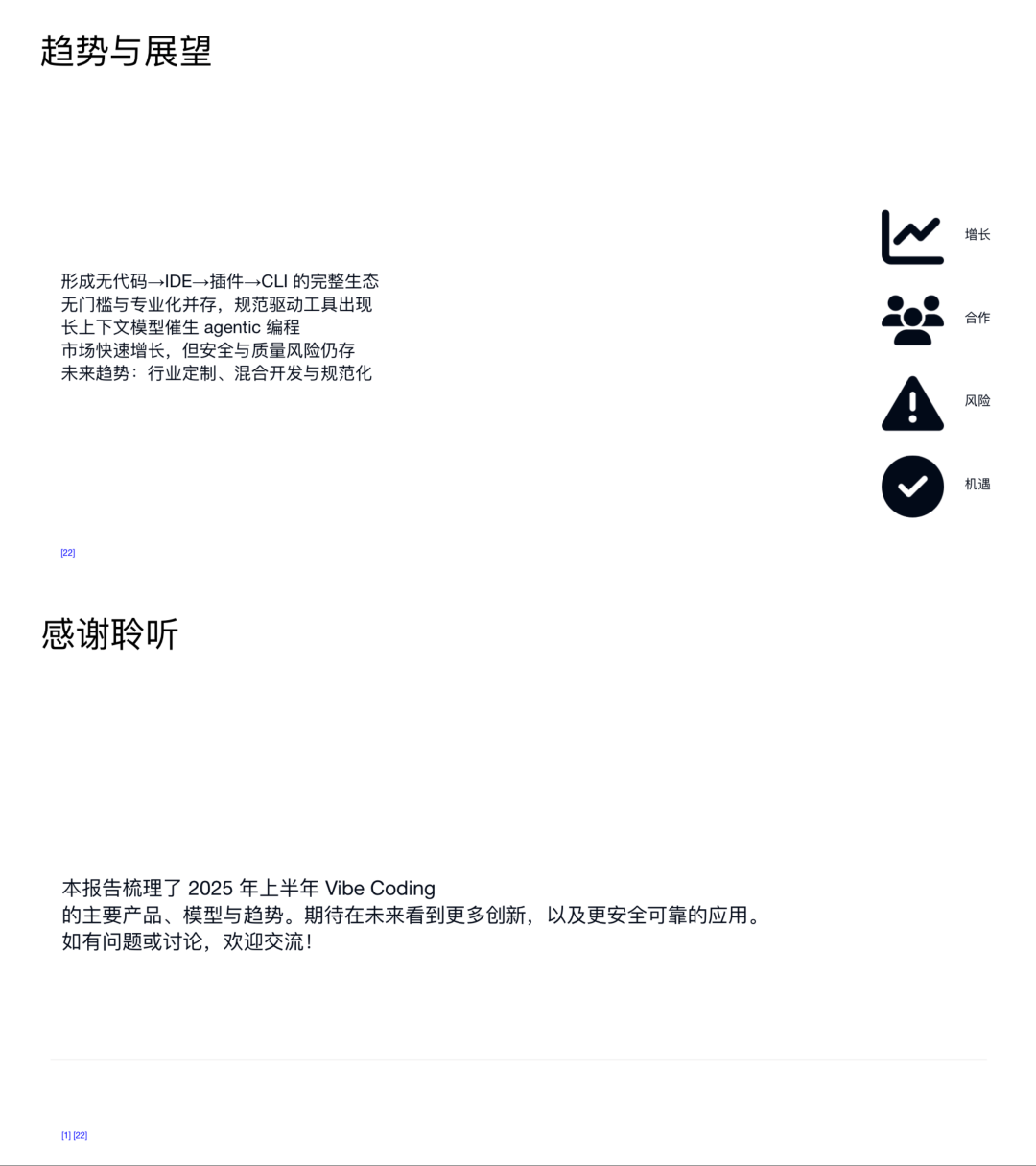 一开始我想让它帮我调研一个熟悉的话题,vibe coding,并整理一份上半年的趋势报告。它快速爬取了几篇网页,生成了一个简明扼要的文档,然后开始整理成 PPT。