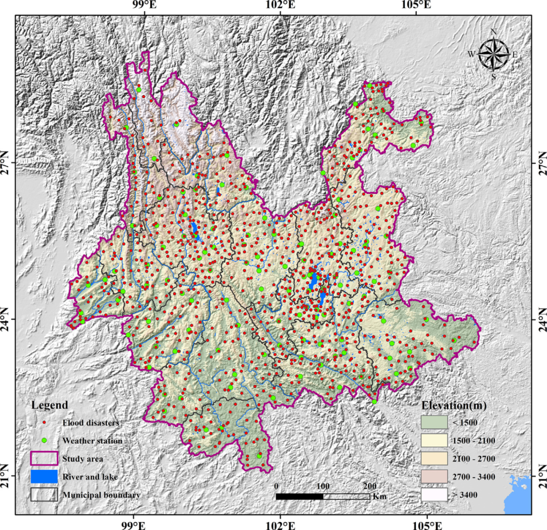 洪水灾害对全球人类生命财产安全构成严重威胁。从宏观尺度探究洪水灾害的空间驱动机制对防灾减灾具有重要意义。本研究提出一个融合驱动因子优化与模型可解释性、兼顾空间异质性的综合分析框架,通过集成最优参数地理探测器(OPGD)、递归特征消除(RFE)和轻量化梯度提升机(LGBM)模型,构建OPGD-RFE-LGBM耦合模型来识别关键驱动因子并模拟洪灾空间分布格局,同时采用SHAP可解释性算法定量解析洪灾空间分异的驱动机制。以中国西南典型山原区——云南省为案例区,基于整理的7332条历史洪灾事件数据库,初选降水、地表环境和人类活动等三大类22个潜在驱动因子展开实证研究。结果表明:云南省洪灾空间异质性显著,其中地貌分区可解释历史洪灾空间变异的66.1%;相较于单一LGBM模型,耦合模型在关键驱动因子识别与影响量化方面具有明显优势,即使在因子数据精简情况下仍能保持较优的模拟性能(RMSE平均降低6%,R²平均提升1%);因子解释性分析显示,不同子区域的关键驱动因子组合存在差异,但降水强度指数(SDII)、强降水日数(R10MM)和五日最大降水量(RX5day)等降水类因子始终是控制洪灾空间分异的主导因素。本研究为具有显著异质性的大尺度区域洪灾空间驱动机制研究提供了定量分析框架,可为灾害管理部门制定宏观防灾策略提供科学依据。