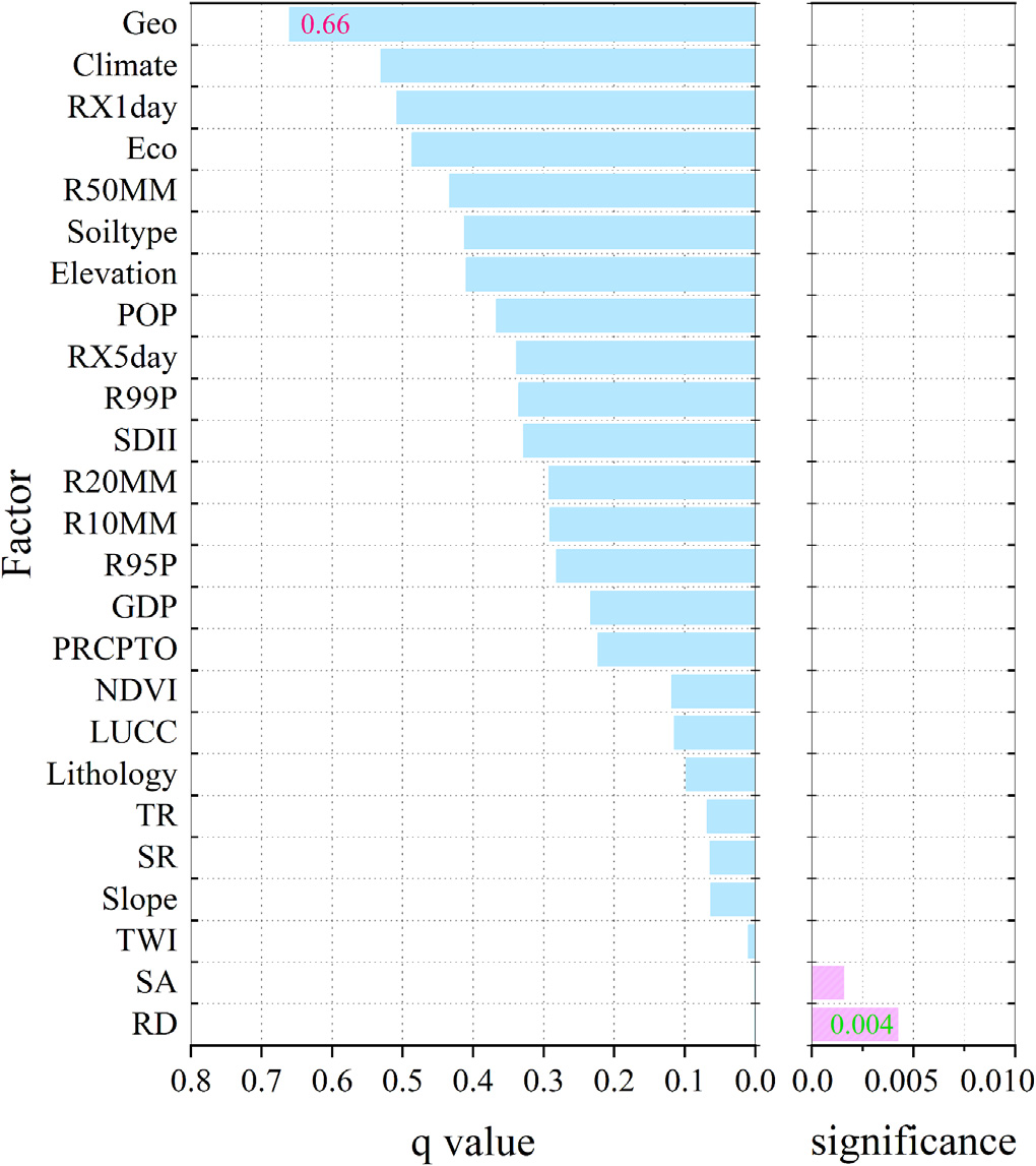 Fig. 5. Ranking of the q values for the flood disaster driving factors at the provincial scale based on the OPGD factor detector.