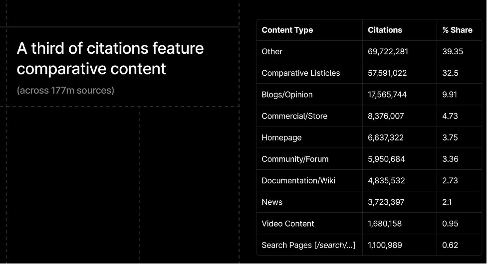 Josh分享的一个重要数据是:大约1/3的引用内容来自“比较类文章”(其次是博客,占约10%)。