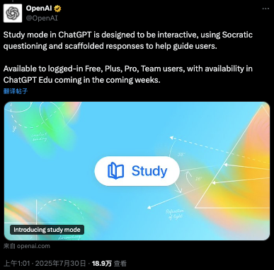 不过,OpenAI也坦言,目前尚无计划强制用户使用该模式。是否选择以“学习模式”进行互动,最终仍取决于学生自身的意愿。