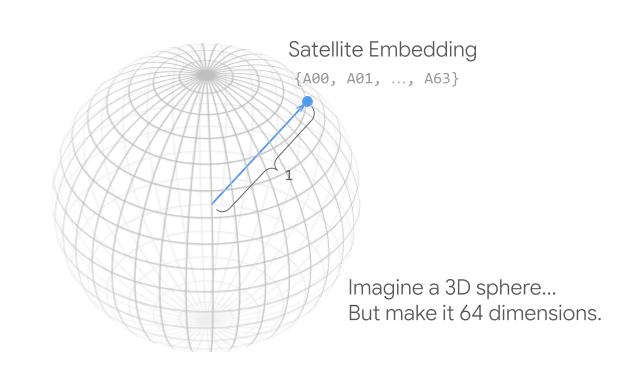 「卫星嵌入」本质上是64维「球面」表面的一个坐标点