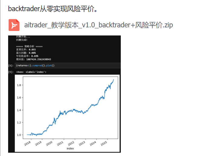 系统就是每天都会做的事情,持续去做,这里其实是建立一个复利效应的系统。你也许不知道何时能成,这里有运气的成分。但日积月累,从量变到质变。但如果要与收益产生联系,你需要建立一个“输出型”爱好。就是做生产者,阅读是消费者,你把读后感写出来,对一些人有用,这就是生产者,日积月累,你就在某一个领域有了自己的影响力。本质也是生产一个用户需要的产品,只不过,这个产品的研发过程,可能需要大量的人和资本,这时候,需要以公司化的方式去运作,甚至需要大资金的支持。现在很多人开始“觉醒”,未必需要依靠一个特定的组织去创造收益。代码和数据下载:AI量化实验室——2025量化投资的星辰大海AI量化实验室 星球,已经运行三年多,1700+会员。