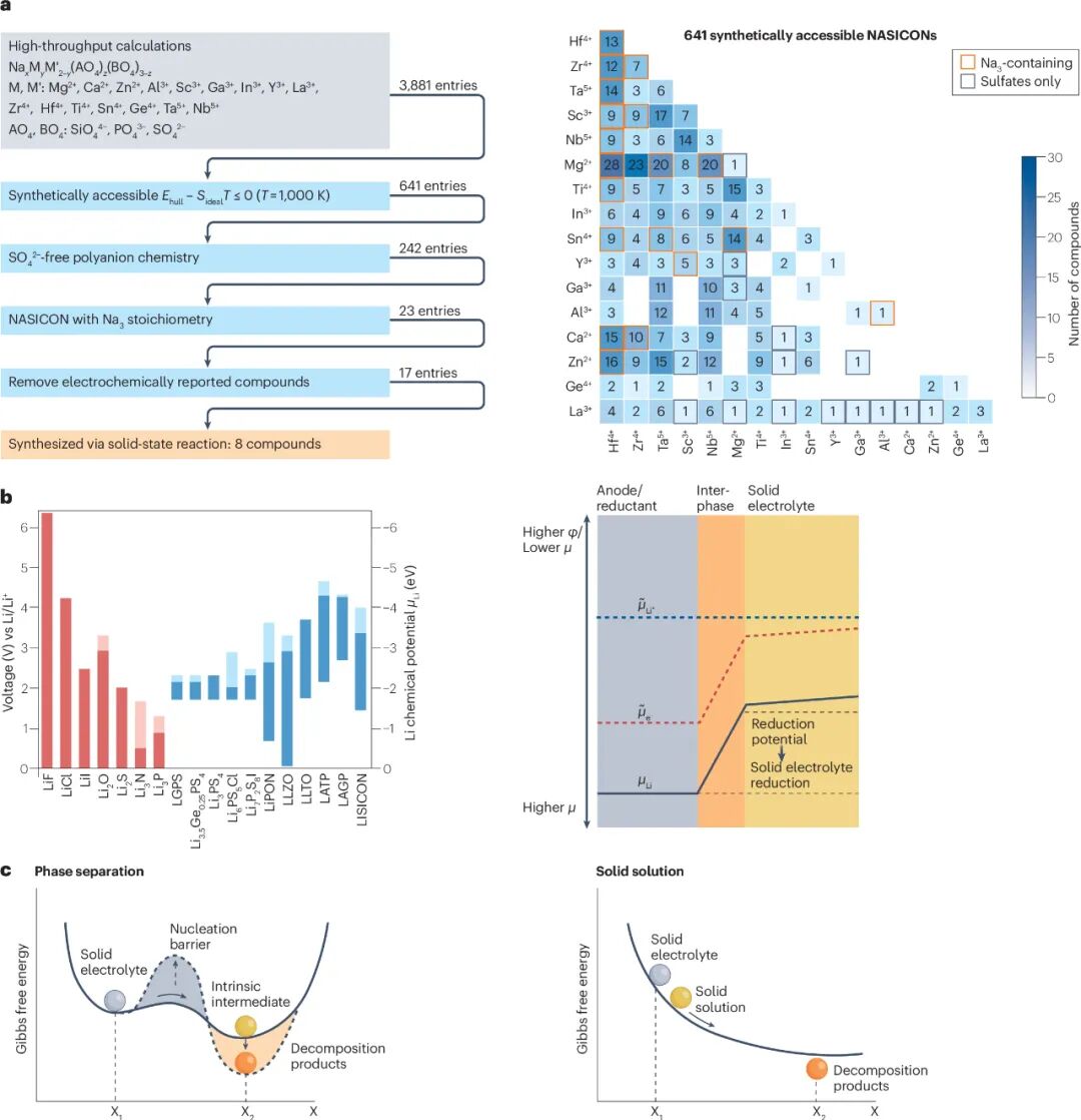 高通量数据驱动计算工具与实验验证相结合,将持续用于研究传统固态电解质的成分变化与化学掺杂,并筛选新型快离子导体的设计要素。该领域大量研究表明,并不存在单一普适的超离子行为设计原则,需通过多样化设计策略优化特定固态电解质体系。