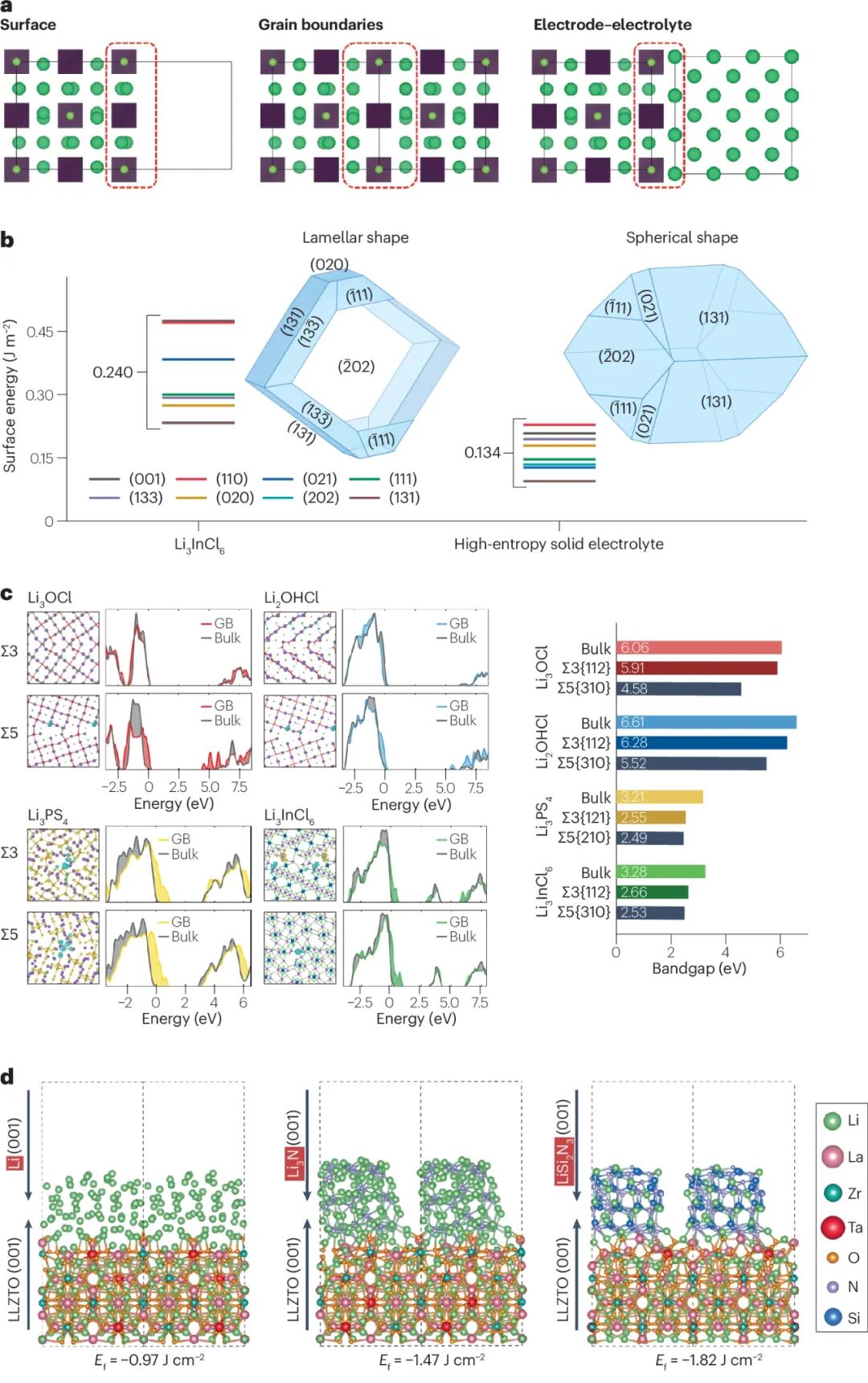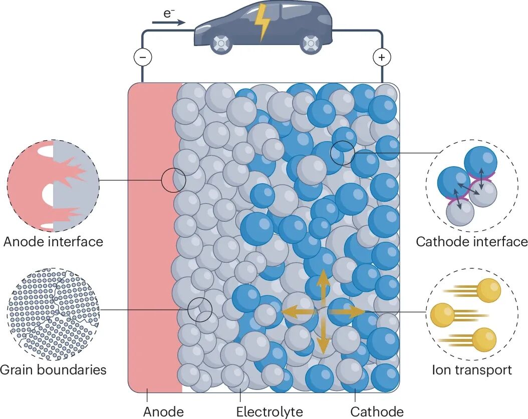 需深入理解固态电解质与电极材料(包括金属负极和高压正极)之间的界面反应与相容性,重点研究电解质-电极界面的电阻及其对充放电过程中离子输运的影响。陶瓷氧化物电解质中的晶界电阻尤为关键。进一步发展电化学稳定性与界面反应的热力学模型,将有助于确定固态电解质实际工作时的本征电压极限。