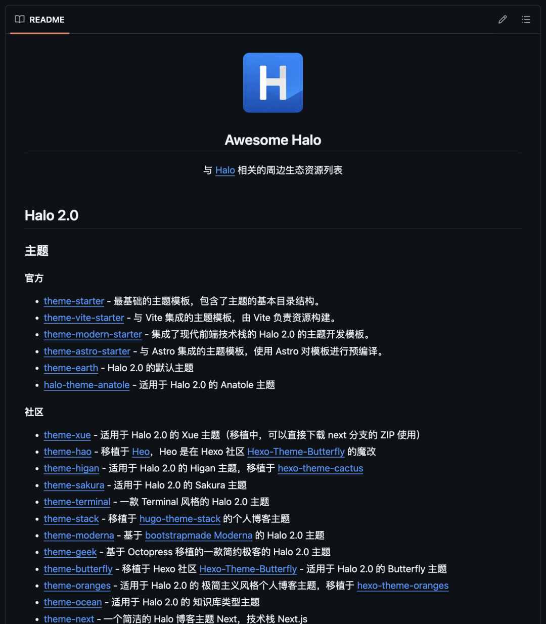 而且 GitHub 上有一个 Halo 主题和插件大合集,也可以去看看。