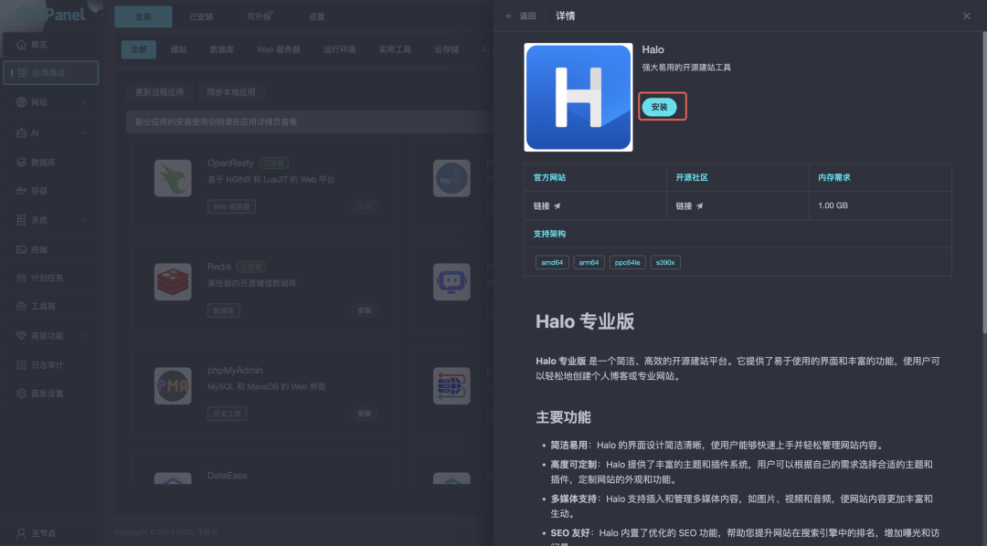 或者使用 1Panel 快速部署,轻松搞定反向代理、SSL 证书及升级备份任务: