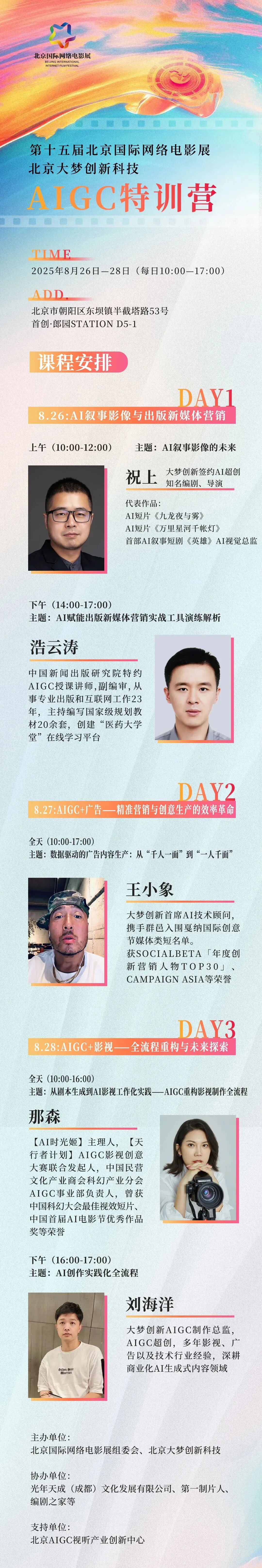 在数字化浪潮中,AIGC(人工智能生成内容)正以前所未有的速度重塑出版、广告、影视三大行业!你是否想紧跟时代步伐,成为AI时代的创意先锋?第十五届北京国际网络电影展·北京大梦创新科技AIGC特训营,为你搭建从技术到商业落地的全链路学习平台。