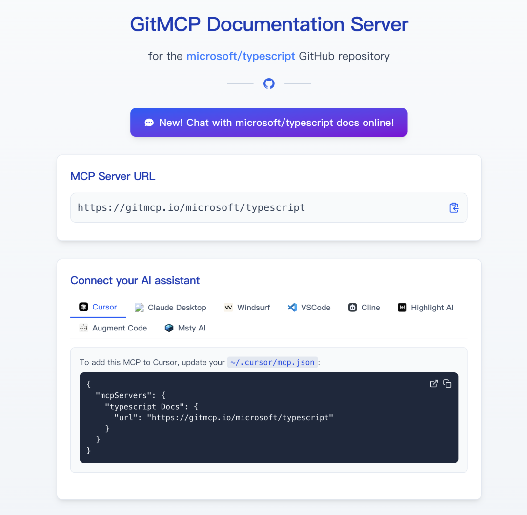 这个开源项目有点绝啊,它可以把任何 GitHub 仓库无缝转换成 MCP 服务,使 AI 助手能够轻松访问和理解项目的文档。Cursor 装了这个玩意,就能随时查看 GitHub 上的项目文档和代码了,避免 AI 依赖过时训练数据,再也不瞎编乱造。零配置集成,无需下载或部署,仅需将 GitHub URL 域名替换为 gitmcp.io,例如: