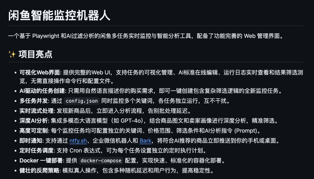 这是个用 Python 写的工具,专门帮你盯着闲鱼上的好东西,自动找符合你要求的好货。它不光能搜关键词,更厉害的是能用 AI 分析商品描述、图片甚至卖家信息,帮你智能过滤掉不靠谱的。你看,配置一下你想盯的二手物品和可接受价格范围,这个机器人就帮你智能监控最新上架的二手商品。发现好东西会立刻通过微信、APP 推送通知你,还有网页后台让你方便设置任务、看结果。简单说,它就是你的闲鱼代蹲助手,用 AI 火眼金睛帮你省时省力淘好货,但记得别用太猛被封号哦。开源地址:https://github.com/dingyufei615/ai-goofish-monitor