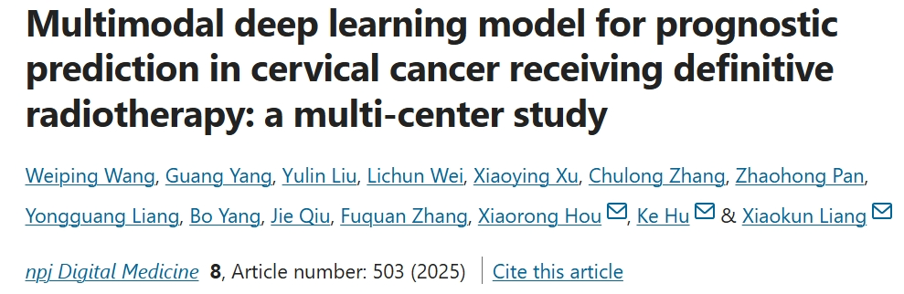 Wang, W., Yang, G., Liu, Y. et al. Multimodal deep learning model for prognostic prediction in cervical cancer receiving definitive radiotherapy: a multi-center study. npj Digit. Med. 8, 503 (2025). https://doi.org/10.1038/s41746-025-01903-9