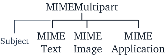 除了这些子类之外,还有其他参数,比如MimeMultipart中的Subject值。所有这些加在一起就形成了下面的结构。
