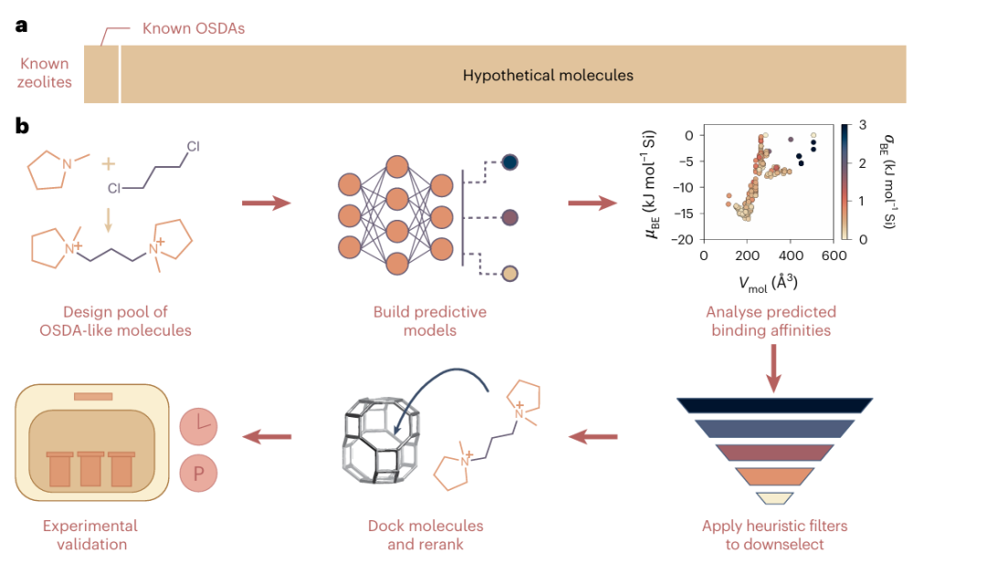 该项研究,开发了ZeoBind计算平台,通过机器学习实现了沸石合成中有机结构导向剂(OSDA)的高效设计。研究者构建了