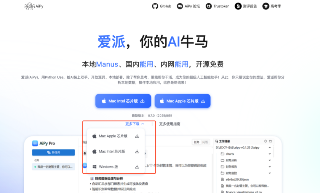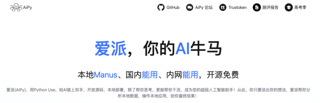 AiPy自称本地版Manus、“AI牛马”,是一个能真正动手执行任务并交付完整成果的AI智能体。开源、本地运行、免费使用。