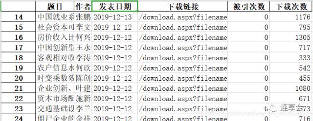 注 :和代码部分有一点不一样,笔者自行输入了标题行,并且按照发表日期排序