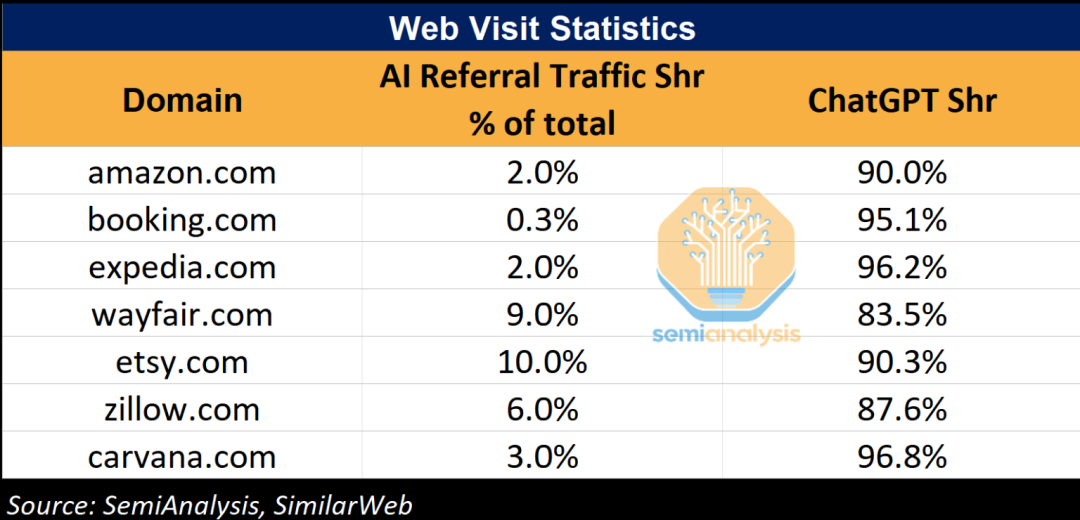事实上,AI 推荐已经为一些小公司带来了可观的流量。例如,Etsy 和 Wayfair 约有 10%的流量来自 AI 推荐,其中超过 90%源于 ChatGPT。这些非巨头公司可能会率先「倒戈」,并借此实现飞速增长。可以参考 Shopify 商家与 Amazon 平台的对比。