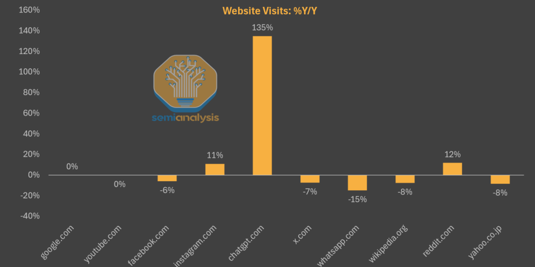 但结论应该是明确的:在过去五年中,科技巨头们几乎没有遇到过真正的挑战,而 OpenAI 已是当下增长最快的网站之一。