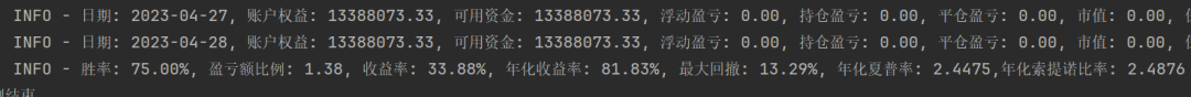 SYMBOL = "CFFEX.IC2306" POSITION_SIZE = 30 START_DATE = date(2022, 11, 1) END_DATE = date(2023, 4, 30)
