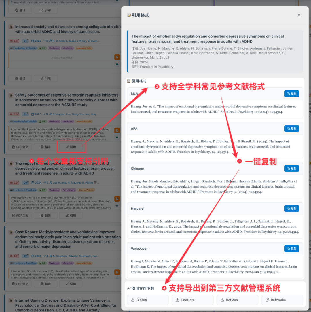📚 完整的引用生态系统!从文献搜索、内容提取到格式化引用,全流程一站式服务。支持APA、MLA、Chicago等多种引用格式,确保学术规范性。