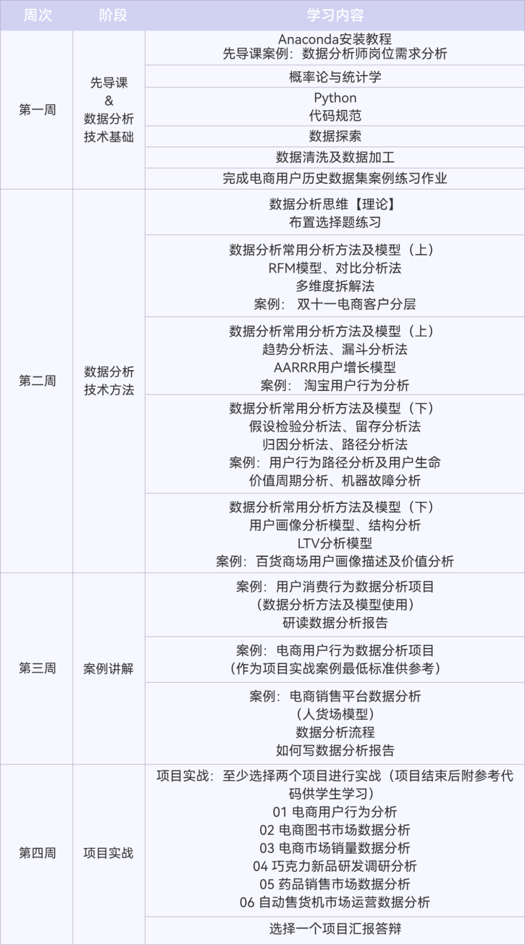 面向计算机、金融、管理等多专业学生,通过4周线上实训,结合真实企业脱敏数据,掌握Python数据分析全流程。从基础编程到实战应用,助力学生快速成长为行业急需的数据分析人才!