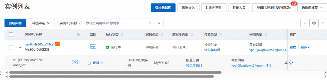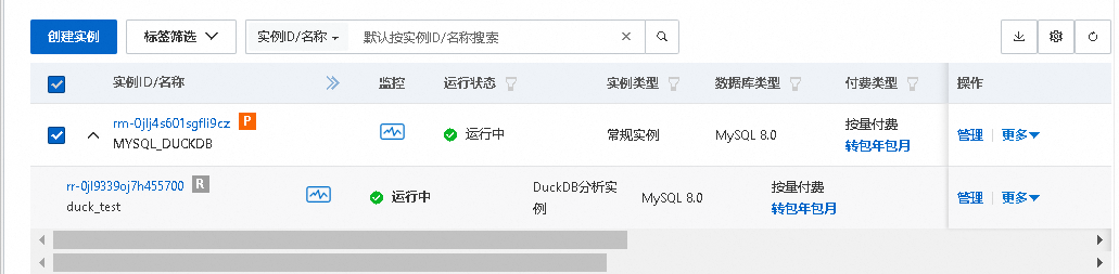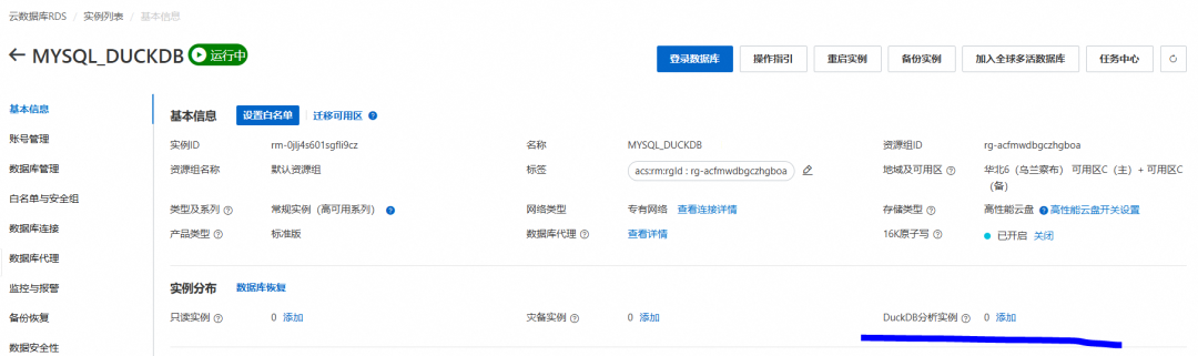 这里相当于在建立MySQL RDS后,在产生一个通过Binlog数据复制的 DuckDB,作为这个MySQL RDS的附属。这里DuckDB 和 MySQL 二者是独立的,各自有独立的链接地址。