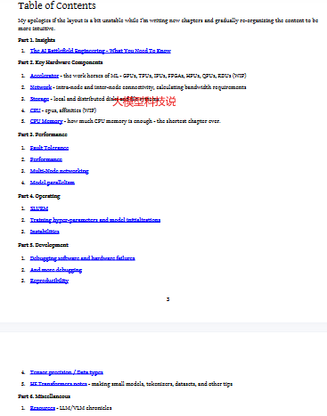 第二部分 硬件:详细介绍了计算资源,包括加速器、CPU和内存,以及存储解决方案和网络配置。