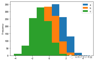 df2[ 'a' ].plot.hist() 多组数据的直方图