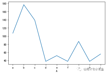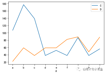 ], 'D' : [ 22 , 59 , 38 , 59 , 59 , 82 , 89 , 48 , 88 ]}).set_index( 'A' ) df 一组数据的折线图如下: