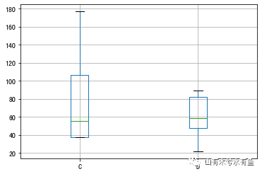 df.boxplot( 'C' ) 再来看看用两列数据来画两个箱型图