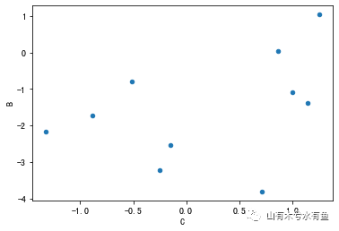 df.assign(avg = df.mean( 1 )).plot.scatter(x= 'C' ,y = 'B' ) 至此,Python基础部分pandas常用的内容就告一段落了。