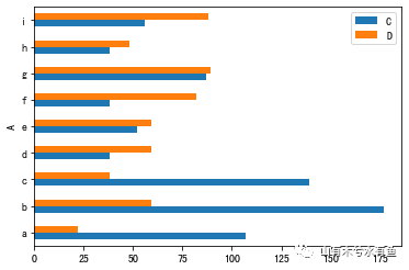 df[[ 'C' , 'D' ]].plot.bar() 横向柱状图