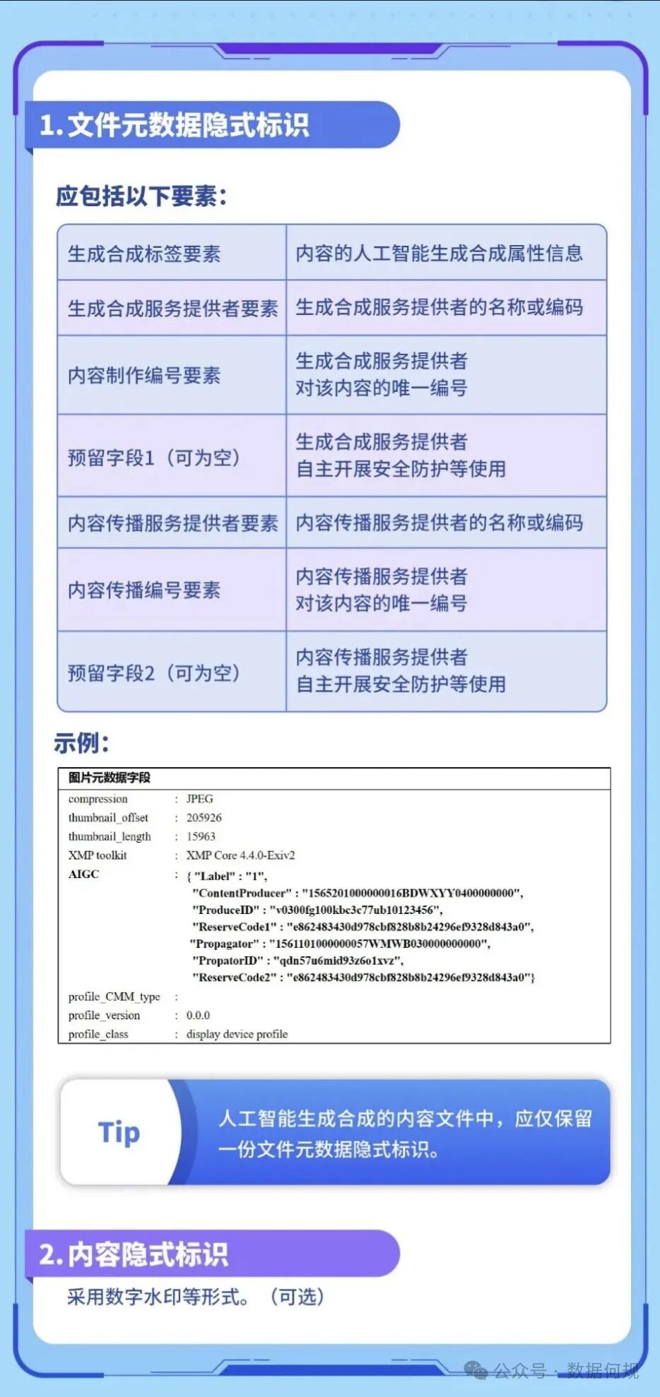 服务提供者应当按照《互联网信息服务深度合成管理规定》第十六条的规定,在生成合成内容的文件元数据中添加隐式标识。
