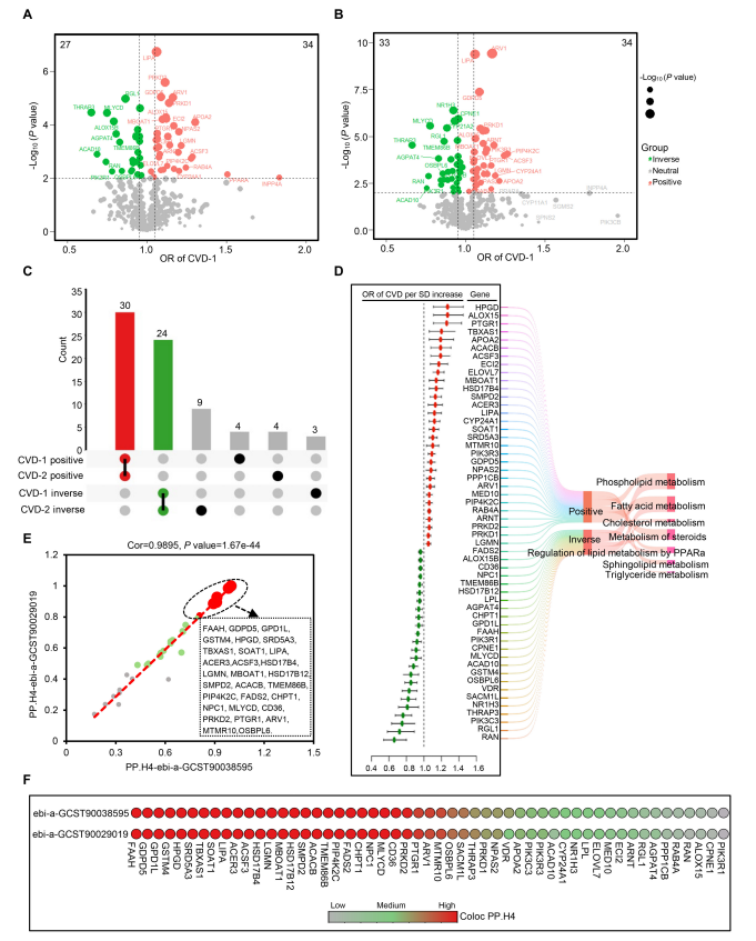 在发现队列(ebi-a-GCST90086053,n=56,637)与验证队列(finn-b-I9_CVD,n=218,792)中共同识别54个因果基因(30个正向、24个负向)。
