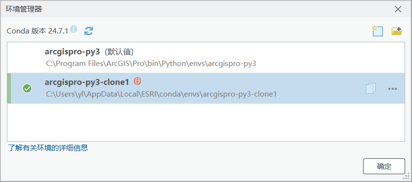 C:\Users\yl\AppData\Local\ESRI\conda\envs\arcgispro-py3-clone1\