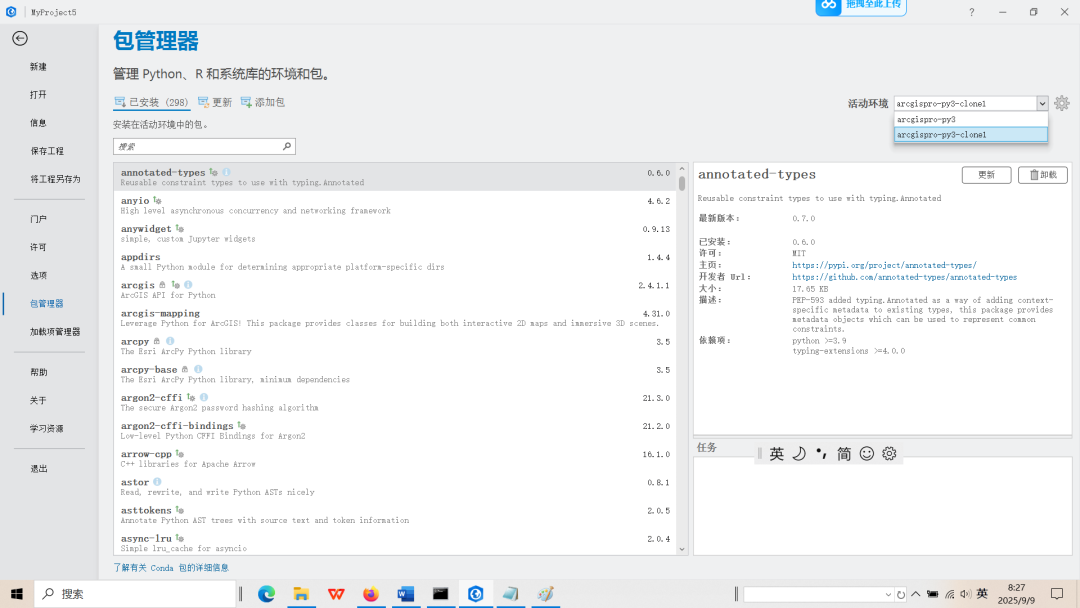 安装了 2.2.6版本,ArcGIS Pro3.5对应的版本:1.26.4