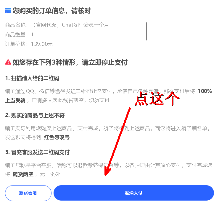 确认是不是你的GPT plus账号,无误后再点击“确认充值”
