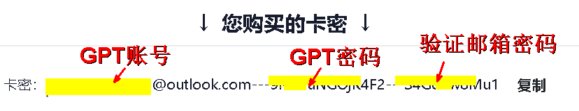 卡密包括三个内容: GPT账号 、GPT密码、outlook 邮箱密码