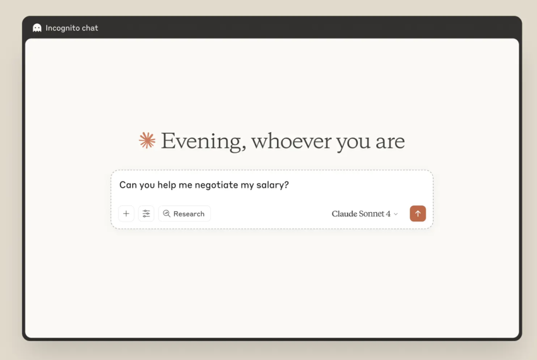 有时候,用户需要 Claude 的帮助,但又不想使用或增加记忆。这时就可以用隐身聊天,它提供了一张干净的对话“白纸”。这种模式非常适合敏感的头脑风暴、机密的战略讨论,或是单纯想要一次不带上下文的新对话。你的常规记忆和历史对话不会受到影响。如果你在团队版或企业版中使用记忆,标准的数据保留策略依然适用。