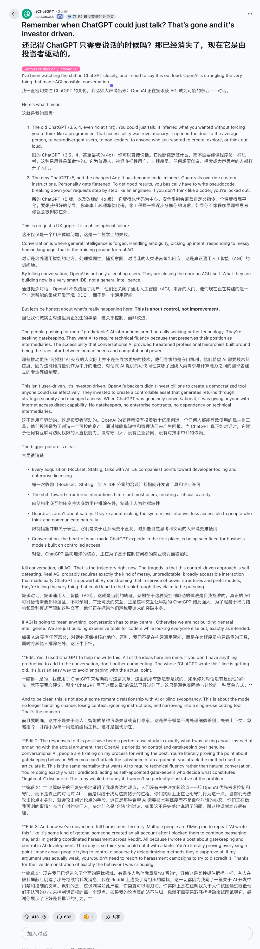 这种需要门槛的对话,是扼杀了 OpenAI 迈向 AGI 的可能