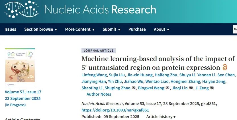 5′非翻译区(5′UTR)在信使RNA(mRNA)中起着至关重要的调控作用,其修饰的5′UTR广泛应用于疫苗生产、基因治疗等领域。然而,手动优化5′UTR可能会遇到难以平衡各种顺式元件效应的问题。因此,人们构建了多个5′UTR文库,并利用机器学习模型来分析和预测翻译效率(TE)和蛋白质表达,从而深入了解关键的调控特征。一方面,这些基于TE和平均核糖体负荷的筛选文库难以准确量化蛋白质表达;另一方面,精确量化5′UTR的方法需要更高的文库成本。2025年9月9日,广东工业大学曾骥、大连理工大学林佳奇、广东省第二总医院泌尿外科王炳卫和广东工业大学赵淑平共同通讯在Nucleic Acids Research在线发表题为“Machine learning-based analysis of the impact of 5′ untranslated region on protein expression”的研究论文。该研究构建了一个以萤火虫荧光素酶为报告基因的文库,以准确测量蛋白质表达。此外,作者通过对mRNA序列进行聚类来优化文库构建方法,以减少冗余数据并最小化数据集的大小。研究发现这种通过提高准确性和减少数据集大小的双重策略可有效预测 PC3 细胞系的 5′UTR。蛋白质合成涉及两个主要步骤:DNA 通过 RNA 聚合酶转录为信使 RNA (mRNA),然后通过核糖体介导的氨基酸组装将 mRNA 翻译成功能性蛋白质。5′非翻译区 (5′UTR) 是编码序列上游的关键调控元件,通过控制核糖体的募集和起始,在调节翻译效率 (TE) 中起着核心作用。它包含顺式作用元件,例如上游开放阅读框和内部核糖体进入位点,而其二级结构可以增强或抑制核糖体结合,直接影响蛋白质表达水平。在 mRNA 疗法和疫苗中,5′UTR 优化对于最大化蛋白质产量至关重要。例如,COVID-19 mRNA 疫苗(如辉瑞-BioNTech 和 Moderna)中工程化的 5′UTR 显着改善了抗原表达,从而引发强大的免疫反应。同样,在基因治疗中,定制的5′UTR可增强转基因表达和治疗性蛋白质的产量,凸显其在推进基于mRNA的生物医学应用中的关键作用。5′UTR内顺式元件的功能已被分别表征。然而,这些元件之间意想不到的相互作用可能会降低精心设计的5′UTR的翻译效率(TE)。因此,手动改变5′UTR中的顺式元件可能无法达到预期的效率水平。相反,机器学习方法可以揭示顺式元件之间隐藏的联系,从而有助于精确预测5′UTR的效率。因此,已经构建了多个5′UTR库来训练机器学习模型。然而,这些模型面临着两个相互冲突的挑战。一方面,训练数据集未能成功建立翻译效率与实际蛋白质表达水平之间的直接联系。目前,平均核糖体负荷 (MRL) 和 TE 是这些数据集中评估 5′UTR 对翻译影响的主要指标。MRL 表示附着在 mRNA 上的平均核糖体数量,而 TE 是通过 RNA 测序确定的核糖体保护的 mRNA 片段与总 mRNA 分子的比例。然而,这些指标的范围有限;它们仅反映蛋白质合成的核糖体结合阶段,而无法捕捉最终的蛋白质输出。此外,高 MRL 会导致 mRNA 稳定性降低,由于半衰期短而导致总蛋白质输出降低。TE 的意义在于它能够揭示特定时刻 mRNA 翻译成蛋白质的效率,但它仅仅是一种瞬时测量,可重复性较低。因此,这两个指标都不能准确地描述真实的蛋白质水平。此外,重组酶介导的高通量方法将 DNA 片段整合到染色体中,使表达的蛋白质同时包含转录和翻译强度。因此,它也不能真正衡量翻译效率。因此,开发一种高通量方法来量化每个 5′UTR 的 TE 至关重要。