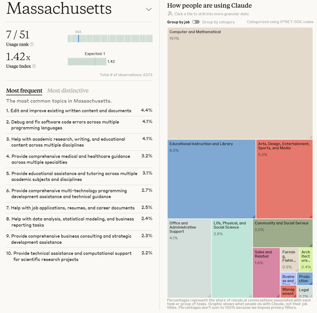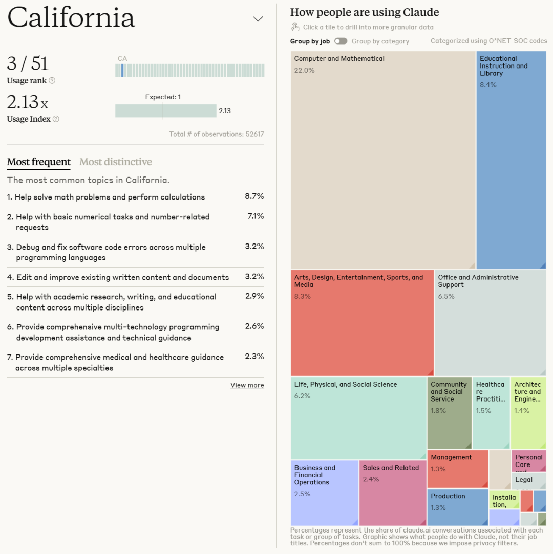 而且,华盛顿DC、犹他和加利福尼亚,人均Claude使用率美国前三。