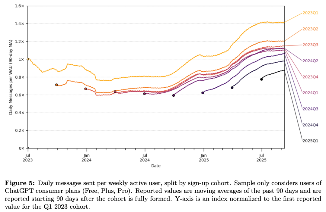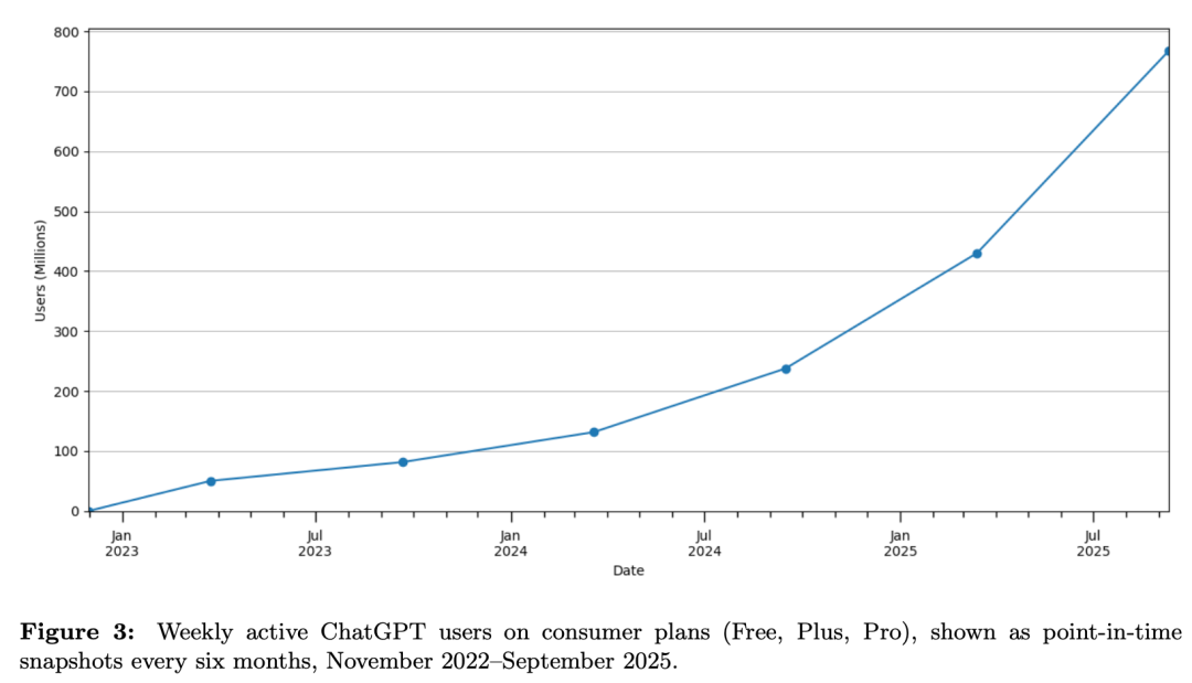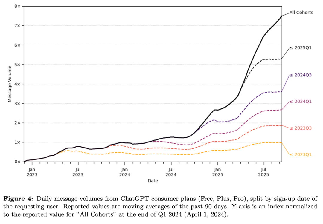 自2022年11月上线到2025年7月,报告覆盖了近三年的海量数据,重点剖析了ChatGPT的使用情况。